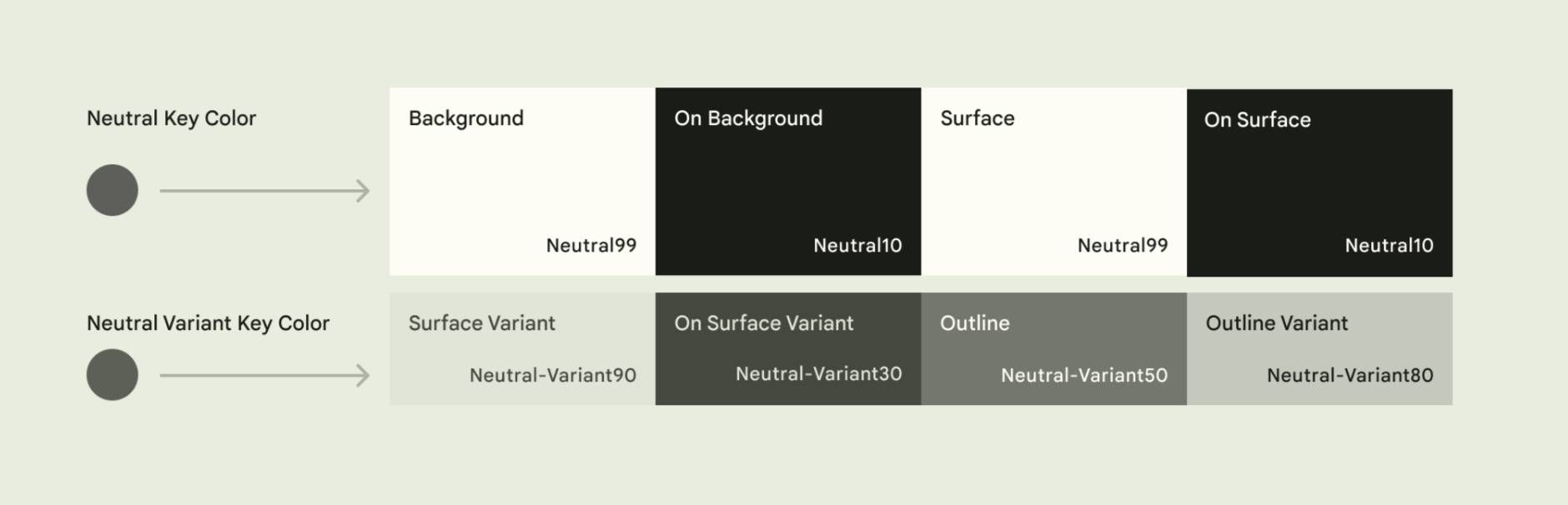 색상은 UI 전체에 일관되게 사용해야하며 요소 사이에 충분한 대비로 요소를 구분해야 합니다. 크게 Accent colors / Neutral colors 으로 분류하여 세분화하는 게 일반적이며, 명확한 커뮤니케이션을 위해 Hex Code보다는 컬러명을 사용합니다.