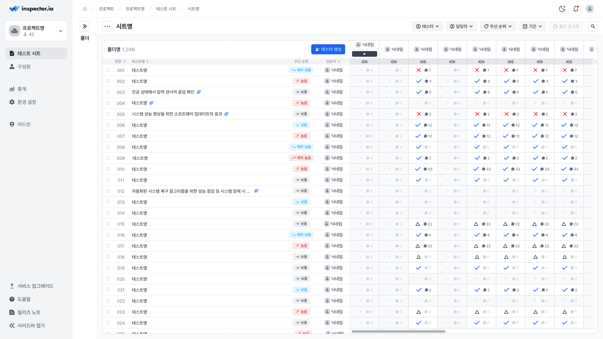 QA의 테스트케이스를 생성하고 실제 테스터들이 작업을 할때 매우 편리하도록 개발하였습니다.